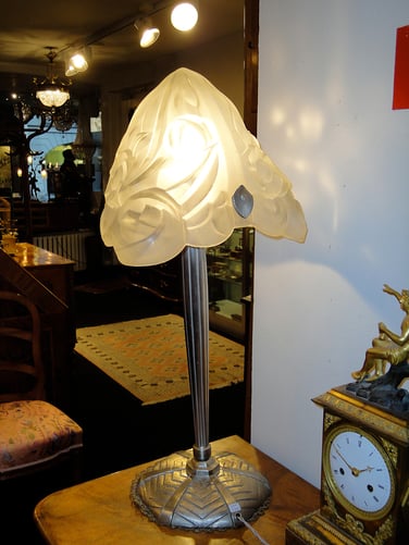 Grande lampe de table, signée „Degué“, française, vers 1930. H = 69cm