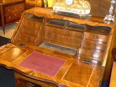 Très beau bureau vaudois, Louis XIV, en noyer. L = 118, h = 115, p = 60 / 103cm
